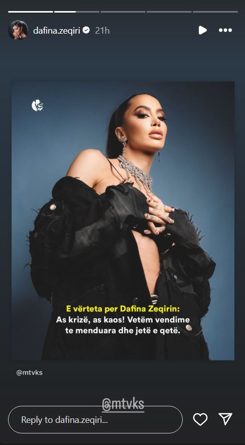 “E vërteta për Dafina Zeqirin: As krizë, as kaos! Vetëm vendime të menduara dhe jetë e qetë”, thuhet në postimin që shpërndau,” u shpreh ajo.