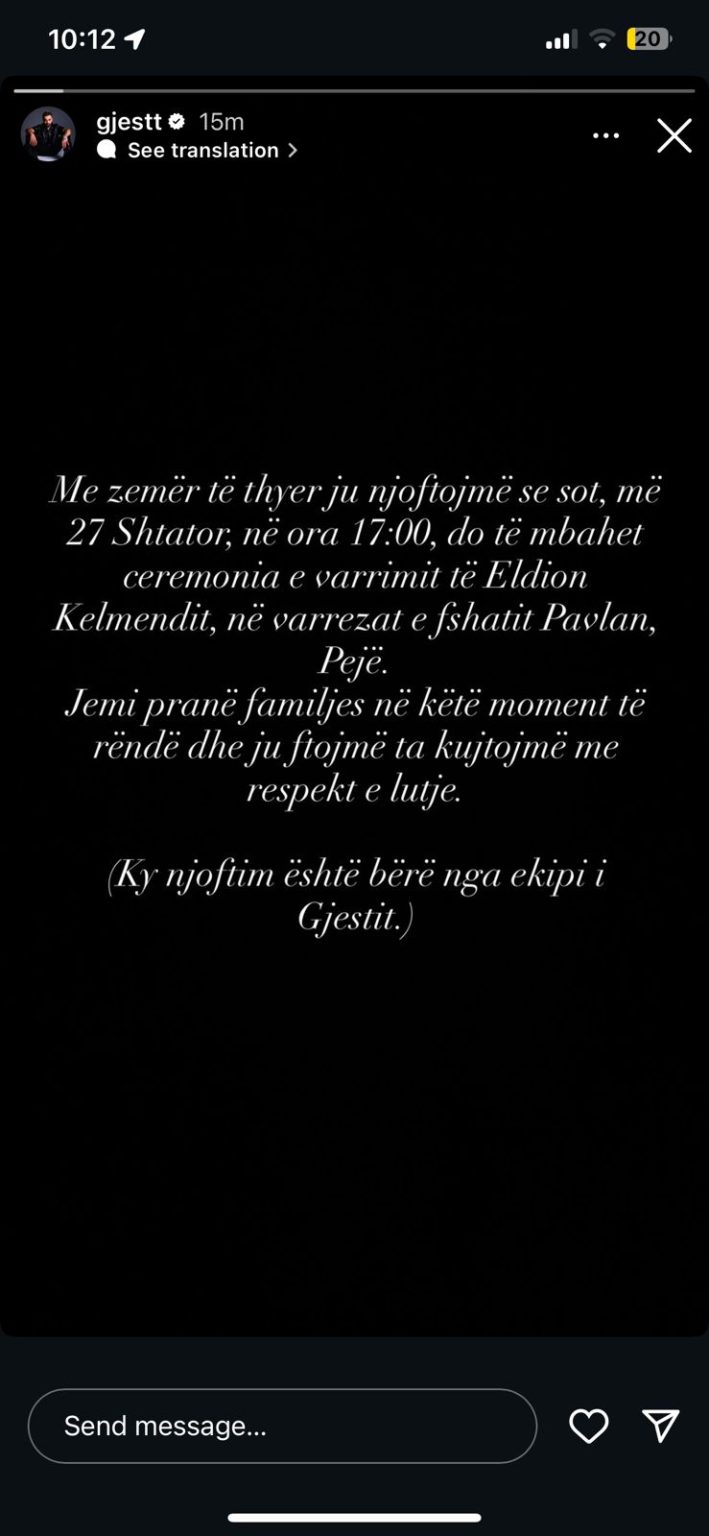 Me zemër të thyer, familjarë, miq dhe të afërm do t’i japin sot lamtumirën Elidion Kelmendit, vëllait të Gjestit, i cili humbi jetën tragjikisht në një aksident rrugor.