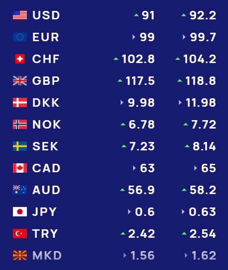 Ndërkohë monedha evropiane euro do blihet me 99 lekë dhe do shitet me 99.7 lekë.