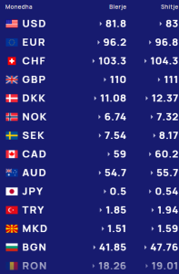 Për kursin e monedhave të tjera shihni tabelën e mëposhtme: