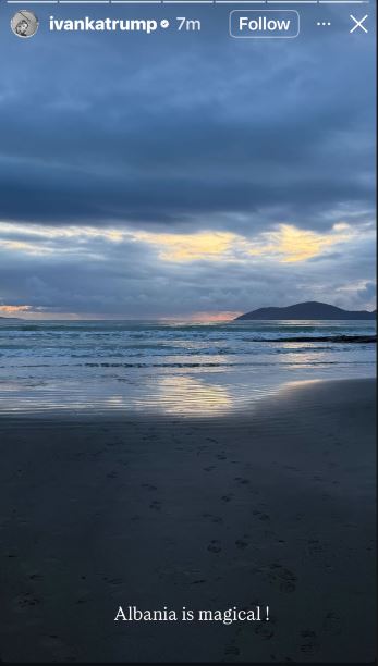 Vajza e Presidentit të Shteteve të Bashkuara Donald Trump, Ivanka Trump ka publikuar sërish foto nga bregdeti i Vlorës. Ivanka ka publikuar një “Instastory” nga bregdeti, ndërsa krahas saj shkruan: “Shqipëria është magjike!”