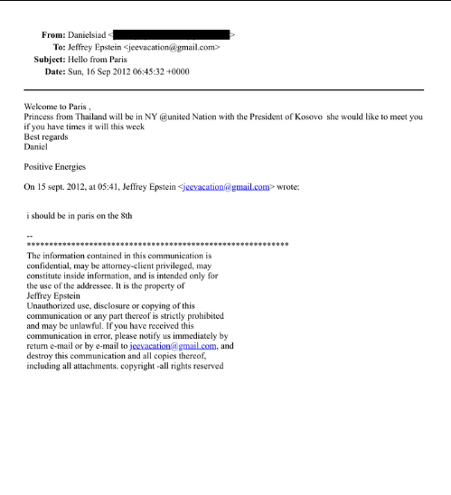 Në mesazhet e publikuara nga Departamenti Amerikan i Drejtësisë, dosja Jeffrey Epstein, përmendet edhe ish-presidentja e Kosovës, Atifete Jahjaga, e cila mbante këtë pozicion në vitin 2012.