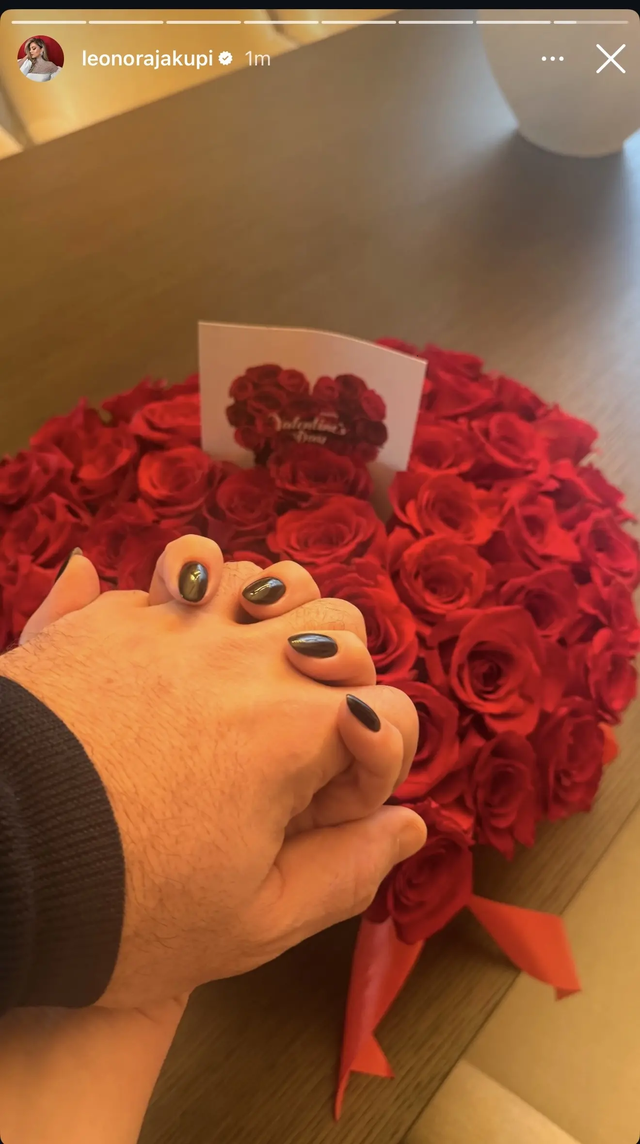 Fotografia e fundit e postuar në rrjetet sociale tregon Leonorën duke shtrënguar duar me partnerin e saj mbi një tufë gjigante me trëndafila të kuq. Ky moment romantik është një konfirmim i dashurisë që ata ndajnë, duke emocionuar fansat e saj.