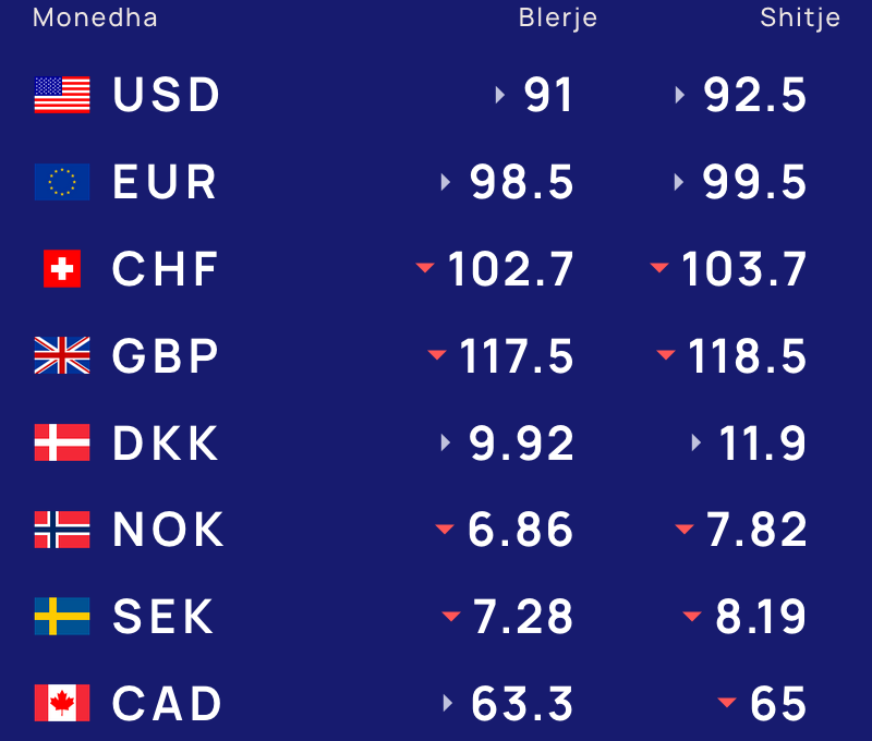 Më poshtë, po sjellim të dhënat e këmbimin valutor, për monedhat e huaja: