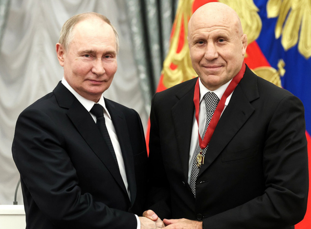 Presidenti rus Vladimir Putin dhe Zyrtari i Komitetit Olimpik Rus (ROC), Mikhail Mamiashvili Gjesti i shëmtuar i kreut të Federatës Ruse të Mundjes ndaj atletit…