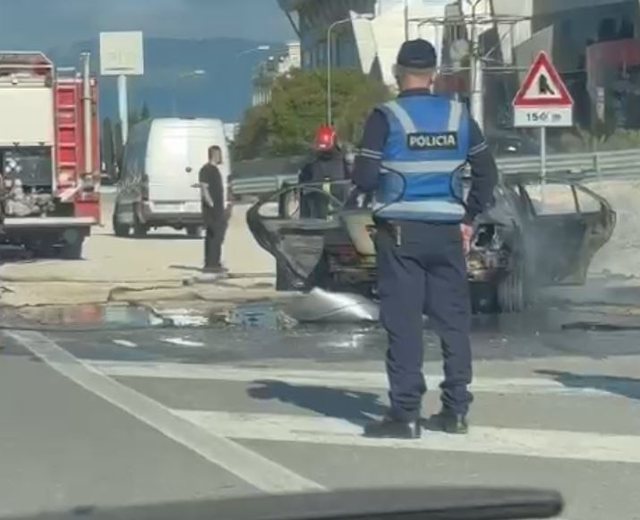 Një është përfshirë nga flakët pasditen e sotme në autostradën Tiranë–Durrës. Siç shihet edhe në pamje automjet i tipit Mercedes C Clas është djegur plotësisht…